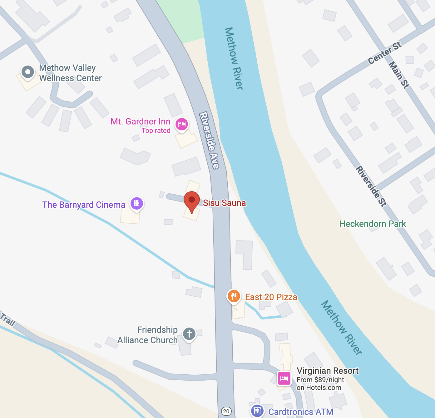 When you arrive, look for the Farmhouse Inn- Sisu Sauna is set up on the property. You’ll see signage guiding you to the sauna area once you’re there.